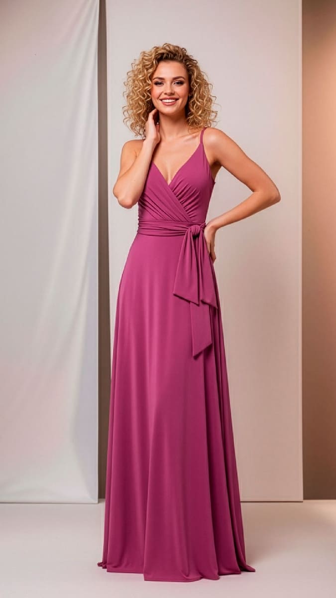 Confeccionado íntegramente en viscosa de alta calidad, el tacto de este diseño es tan suave como su caída es impecable. Este tejido premium no solo ofrece una comodidad excepcional, sino que garantiza una silueta sofisticada y duradera. El detalle del escote cruzado y el sistema de cierre anudable crean un ajuste personalizable, convirtiendo a este vestido largo viscosa elegante en una pieza verdaderamente exclusiva de la colección KNS.